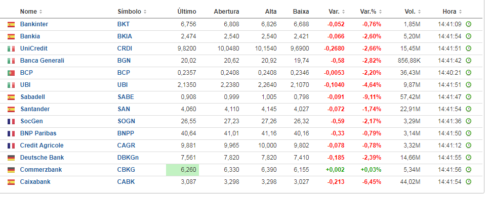 alguem pode postar as cotações actuais dos bancos europa por favor?