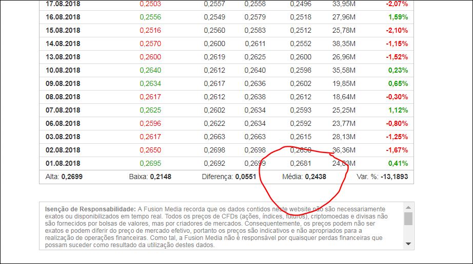 cotações da banca, alguem?