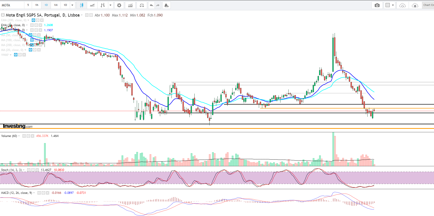 Muito interessante, diria que temos em 1.11 um valor chave. Se supera os ursos correm a comprar e a ação dispara.