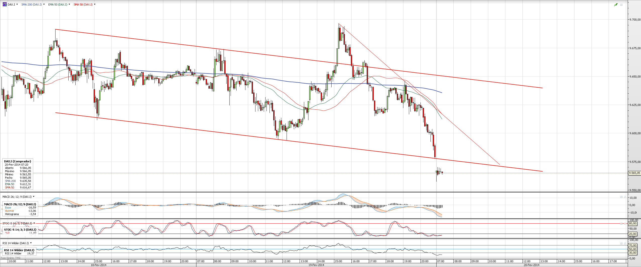 Eu não tenho estado no DAX devido a esta volatilidade diária e a impossibilidade de fazer daytrading, mas, com esta queda dos futuros de 95 pontos durante a noite, diria que a tendência grande é de queda mas que a tendência depois da abertura agora, deve ser de subida para recuperar as perdas.