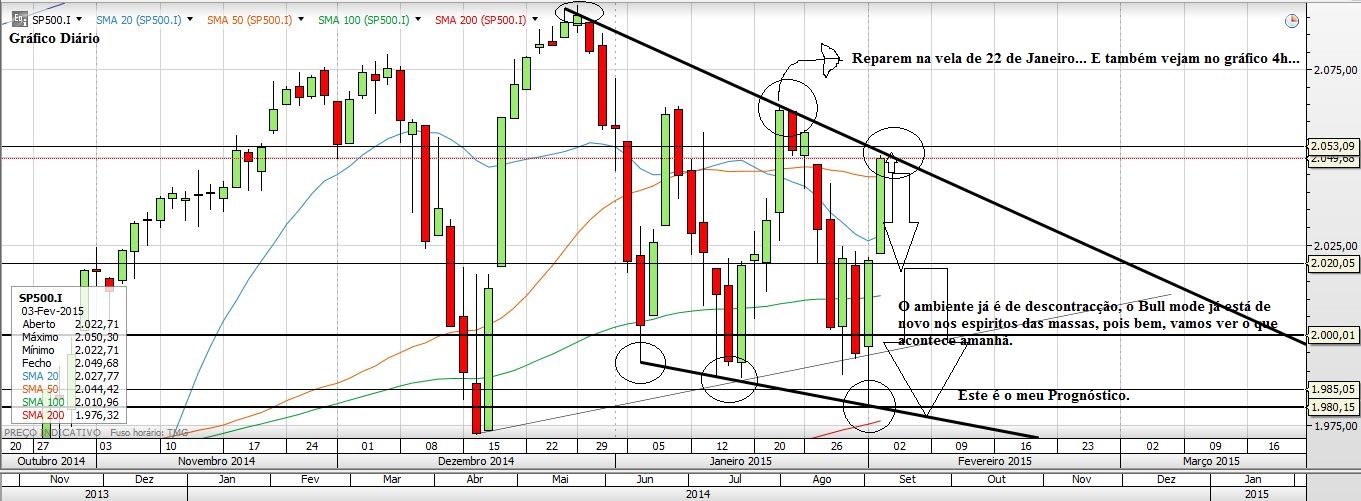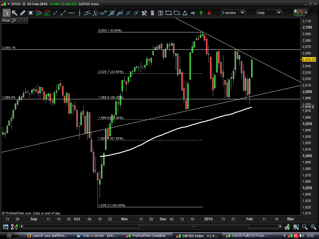 Também não vou entrar Longo, apesar do tal Triângulo de que agora se fala... o meu compromisso estava demasiado centrado no lado Curto. Oportunidades existem permanentemente, hoje, amanhã, daqui a um mês, dois ou três. Tinha decidido com o meu "eu" que se este plano (Curto na forma, longo no tempo) no S&P500 não resultasse iria aproveitar para fazer uma pausa. O Dezembro e principalmente o Janeiro correram muito bem, mas confesso que também estou emocionalmente um pouco cansado, o que não é bom, há que saber fazer uma pausa. Está aqui uma boa oportunidade para a fazer...