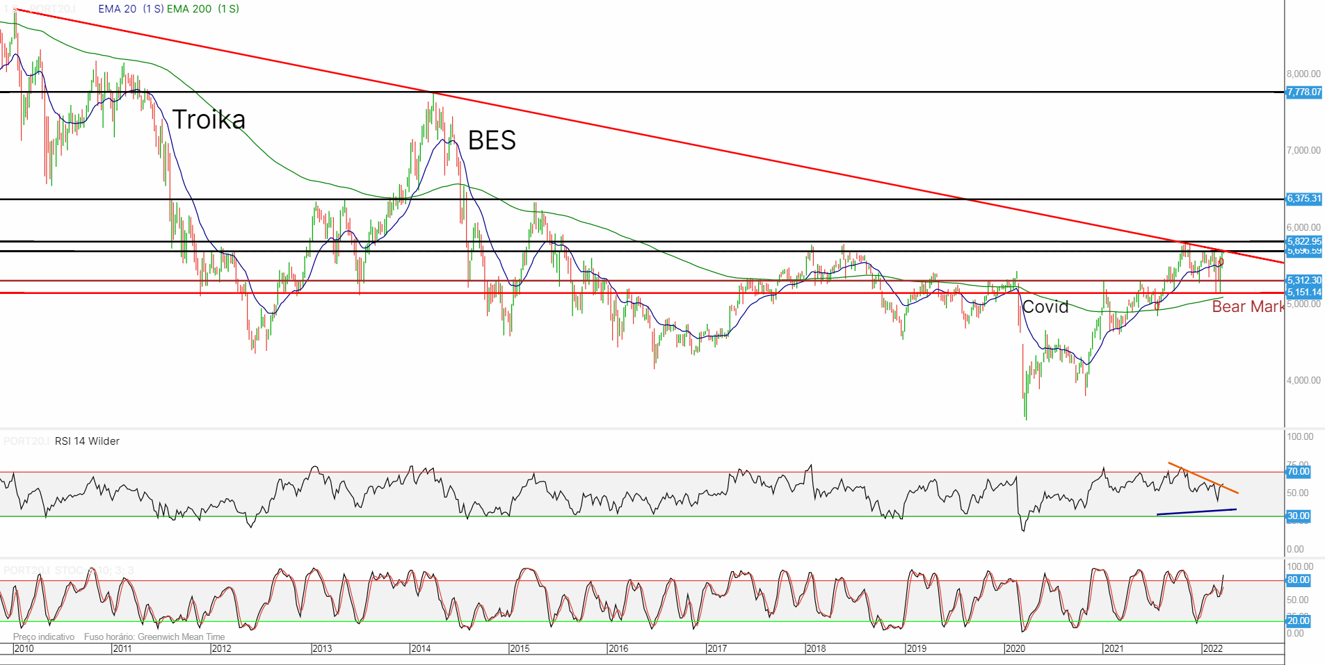 O mínimo de hoje, foi na mesma zona do mínimo do início do conflito (5150 pts).