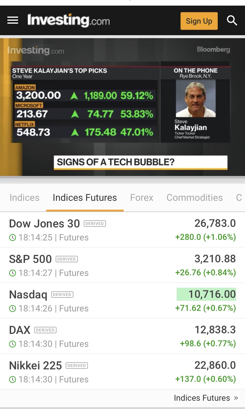 Tudo se conjuga para mais um dia em grande nas bolsas americanas. Com a Apple, FB e Amazon a serem as estrelas da companhia.