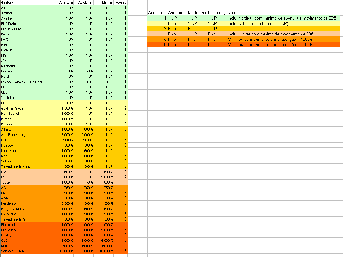- Até 1000€/$: ACM, BNY, GAM, Henderson, Morgan Stanley, Old Mutual e Threadneedle IS