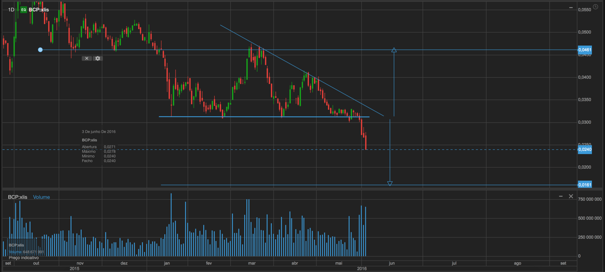 Estou atento aos gráficos embora continue a pensar que existem motivos de força maior para "abanar" desta forma a cotação do BCP mesmo para além do espectro da ameaça de um mega A.C