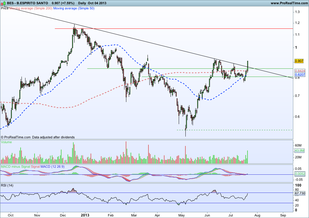 Eu aposto na confirmação! Nos últimos meses o BES quando subiu foi em força e hoje parece-me ter sido um belo arranque. Pena estar fora!