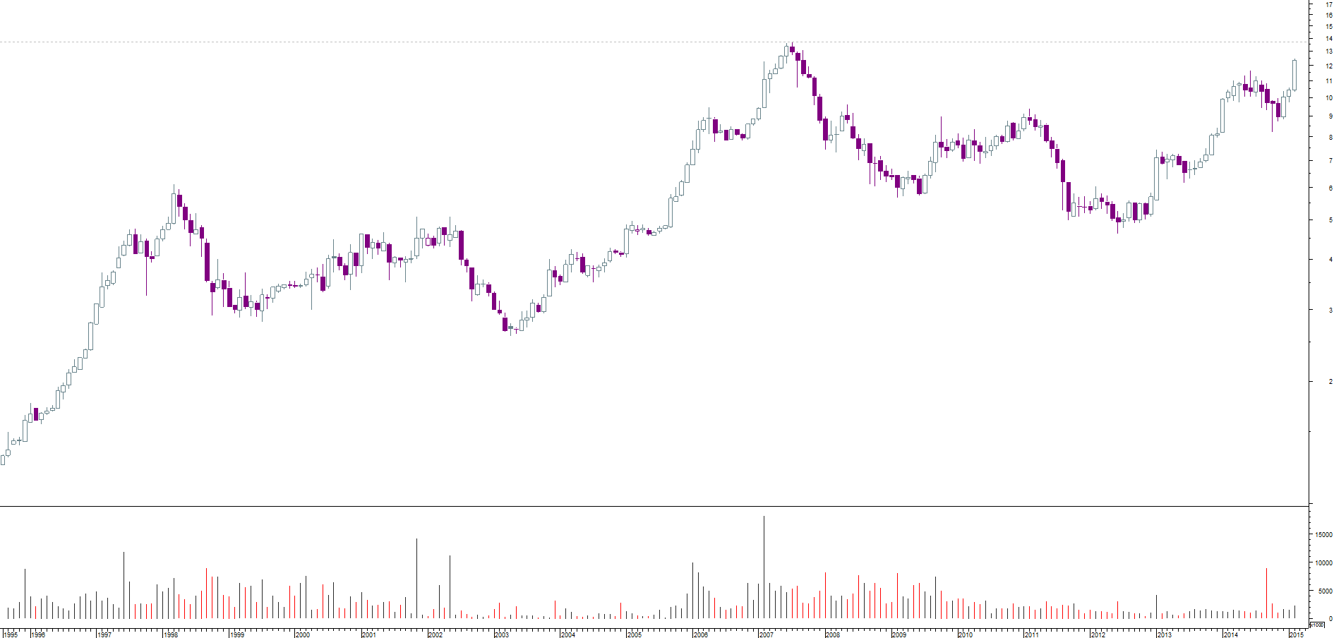 Tou a ver ela a correr para anteriores máximos de 2008 ali perto dos 14€ (13,80) mais concretamente até porque quem as vai vender com a antecipação dos resultados do 1 trimestre e com esta ultima avaliação destes,