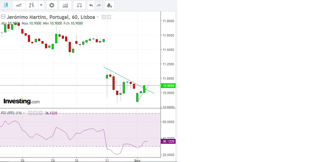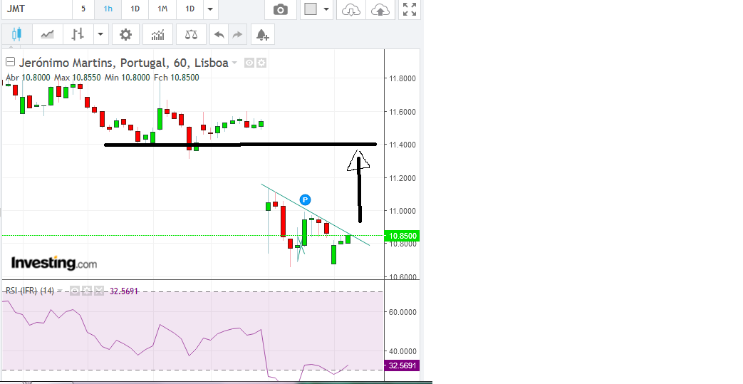 Ela ca vai em boa recuperação, ontem dos -7% acabou nos -5,69%, hoje estava fora a ver os primeiros minutos de negociação, entre a 10,78€ quando estava claramente em recuperação do minimo de hoje e está claramente a querer inverter para verde e recuperar parte das quedas de ontem. Prevejo proximos dias bons, porque não me parece que esteja cara quando há poucos meses estava a 17,50€ e olhando a um RSI de 29, está claramente sobrevendida. Carrega JM, para já 0,74% de ganhos iliquidos, está gostoso inverter para verde mas vamos ver. Em todos os dias desta semana recuperei dinheiro