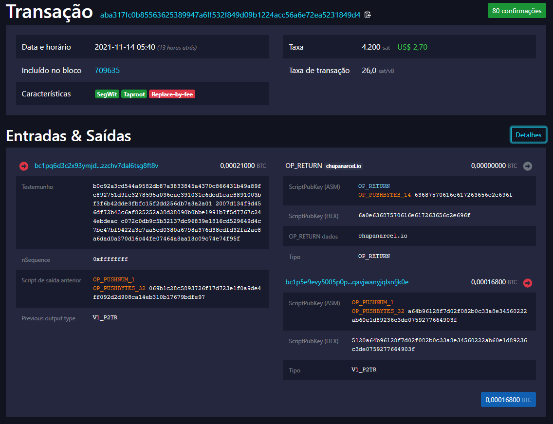 Os brasileiros não perdoam e já deixaram umas mensagens nas primeira transações taproot