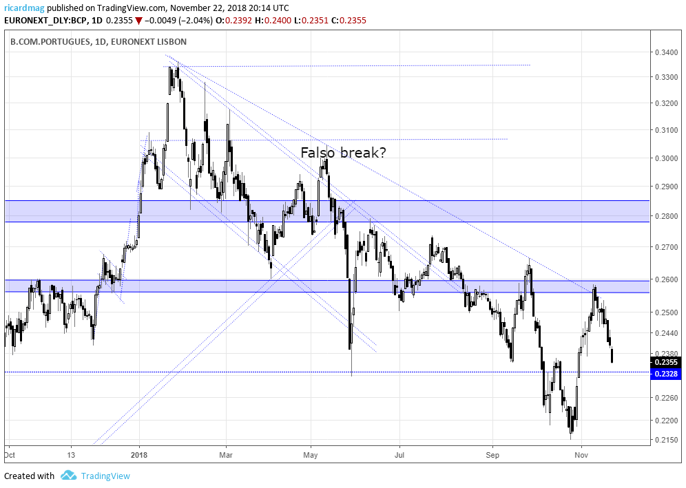 BCP está em tendência de queda há 9 sessões , depois de ter feito máximos nos 0.2580