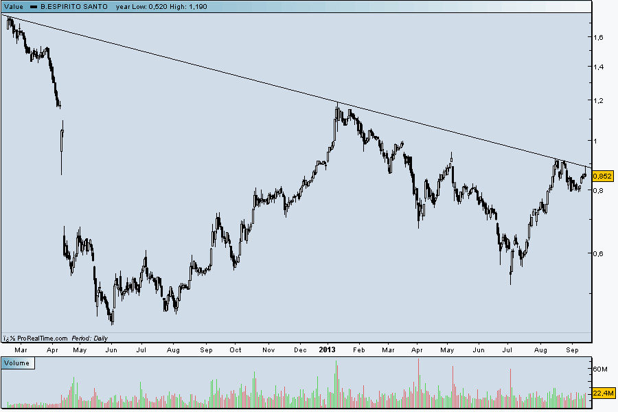Quanto ao BES, sou sincero, este ano já me enganou uma mão cheia de vezes e quando entro sou constantemente "cuspido" pelos stops. Não é nenhuma "vingança", apenas entro quando encontro razões para o fazer. Neste momento, tenho valores aos quais voltarei a entrar e até pode ser já nesta segunda-feira. A ver vamos.