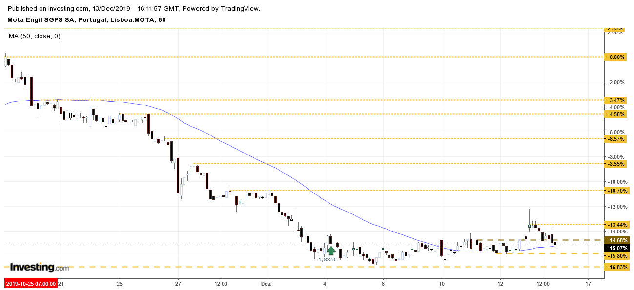 Por outro lado o padrão não é muito diferente do fundo anterior e estou tentado a cravar um ferrito, o stop lógico não está longe, o que torna o risco pequeno e, tratando-se da Mota, pode ser que aproveite um daqueles esticões que muitas vezes dá!