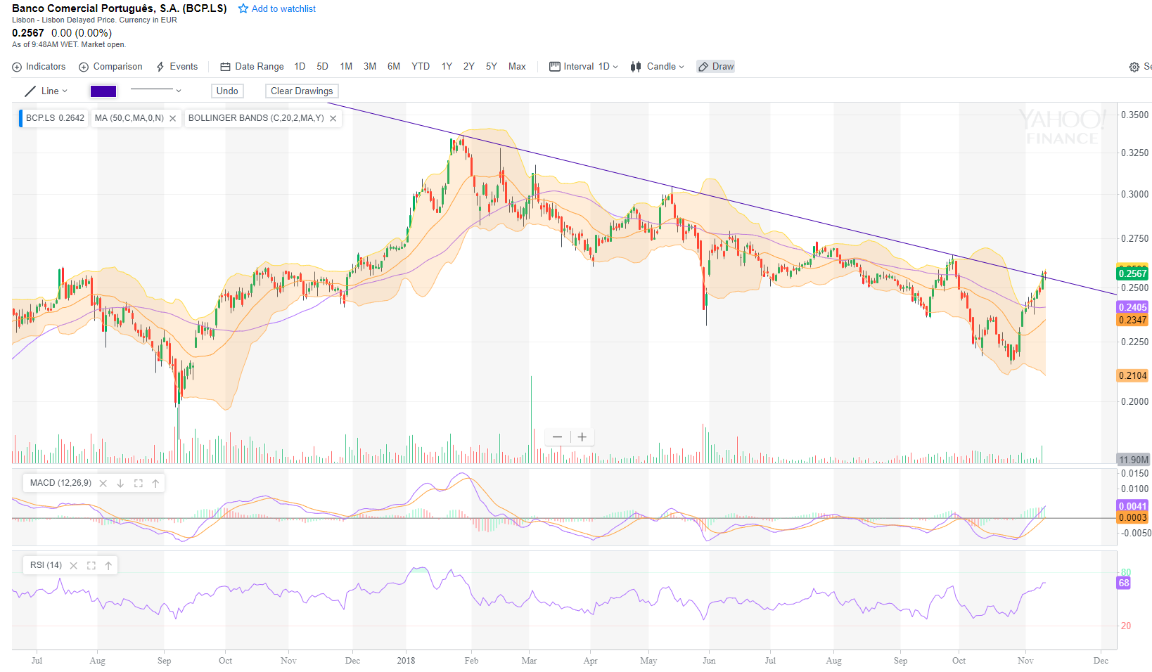 Para já o bcp a respirar um pouquinho das recentes subidas naquele que pareçe ser um movimento perfeito de quebra da ltd médio prazo,pareçe já não estrebuchar.