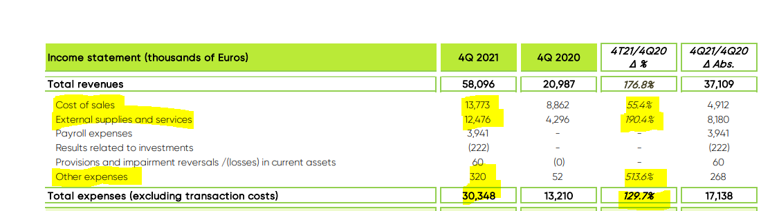 2. Nas contas da Greenvolt do 4Q2021, os custos operacionais aumentaram exponencialmente de acordo com o print anexo;