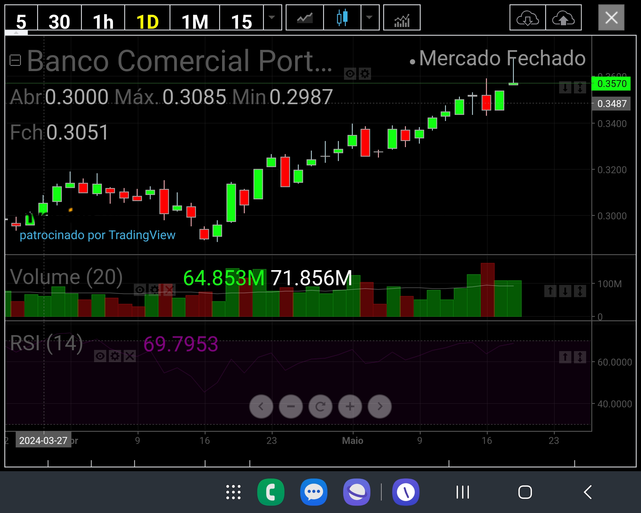 Accao bull com novos maximos e muito volume, acreditemos que a vela de hoje foi apenas realizacao de mais valias e que ate aos dividendos podemos atingir os 0.40 mesmo que tenha uma pausa para respirar.