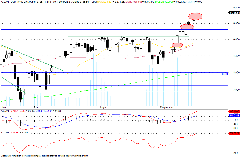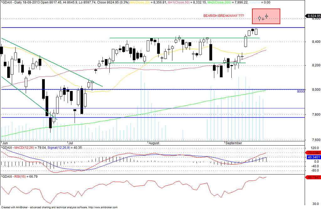 Dax sem força, cheio de dúvidas entre as eleições alemãs, a Síria, o teste de misseis de defesa de Israel etc etc.