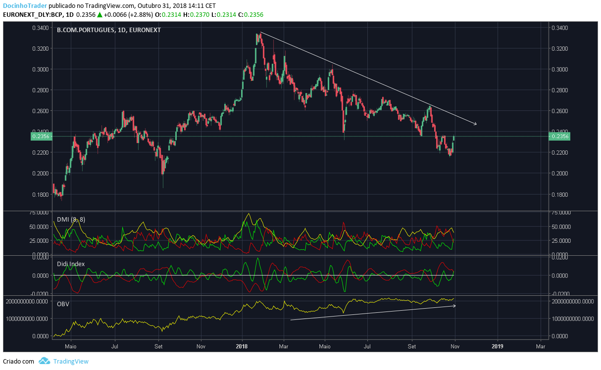 - no dia 25/10/2018, o BCP cotou a 0.2148 ou seja já chegou a corrigir cerca de 50% (48.16) da subida ao longo dos ultimos 9 meses;