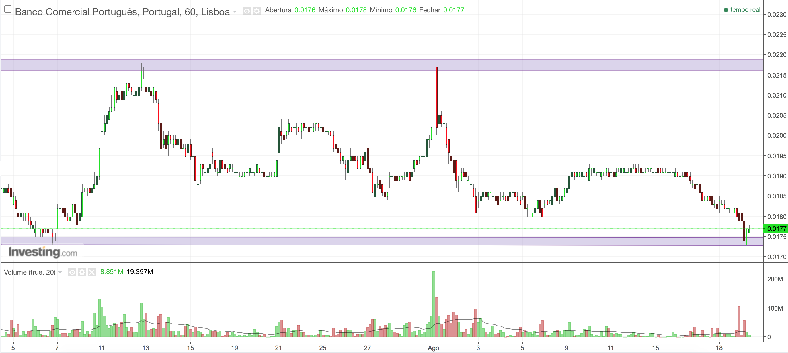 O que já percebi há algum tempo, e tu ainda não, pois ainda ontem escreveste que reforçaste, em 10 %, a tua posição acionista no BCP comprando a 0,0182 euro, é que o BCP se prepara para testar o seu mínimo histórico e, provavelmente, fazer novo mínimo histórico. É esta a minha razão, que está próxima de ser uma realidade. A ver vamos ...