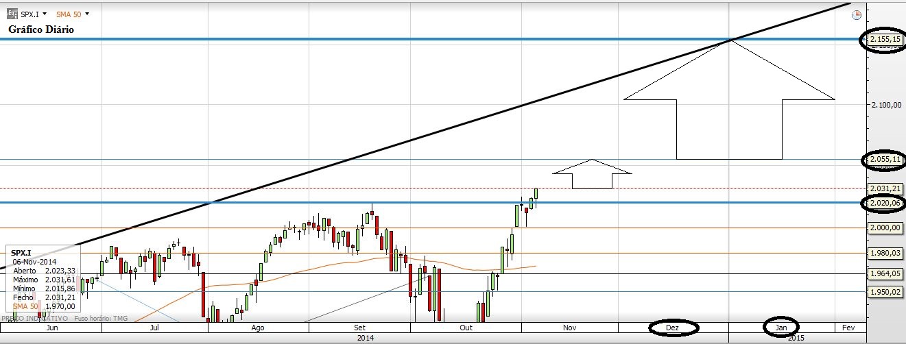 Penso que o SP500 vai ultrapassar nesta e próxima semana, os 2050 (+5 /-5, dando a respectiva margem de erro.), o que é sensivelmente 1,3%.