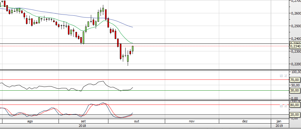 Enquanto não ultrapassar os 0.33 ou pelo menos romper os 0.26 (Linha tendência canal descendente), existem melhores opções...