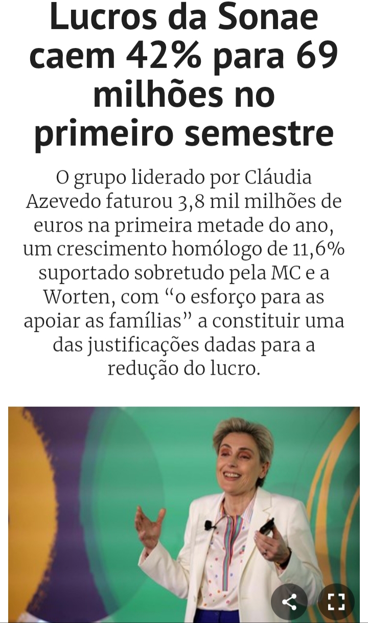 SalvaFP Escreveu:Sonae te EV acima dos 4B, vai encaixar 500Me no segundo semestre com a NOS e sportzone..