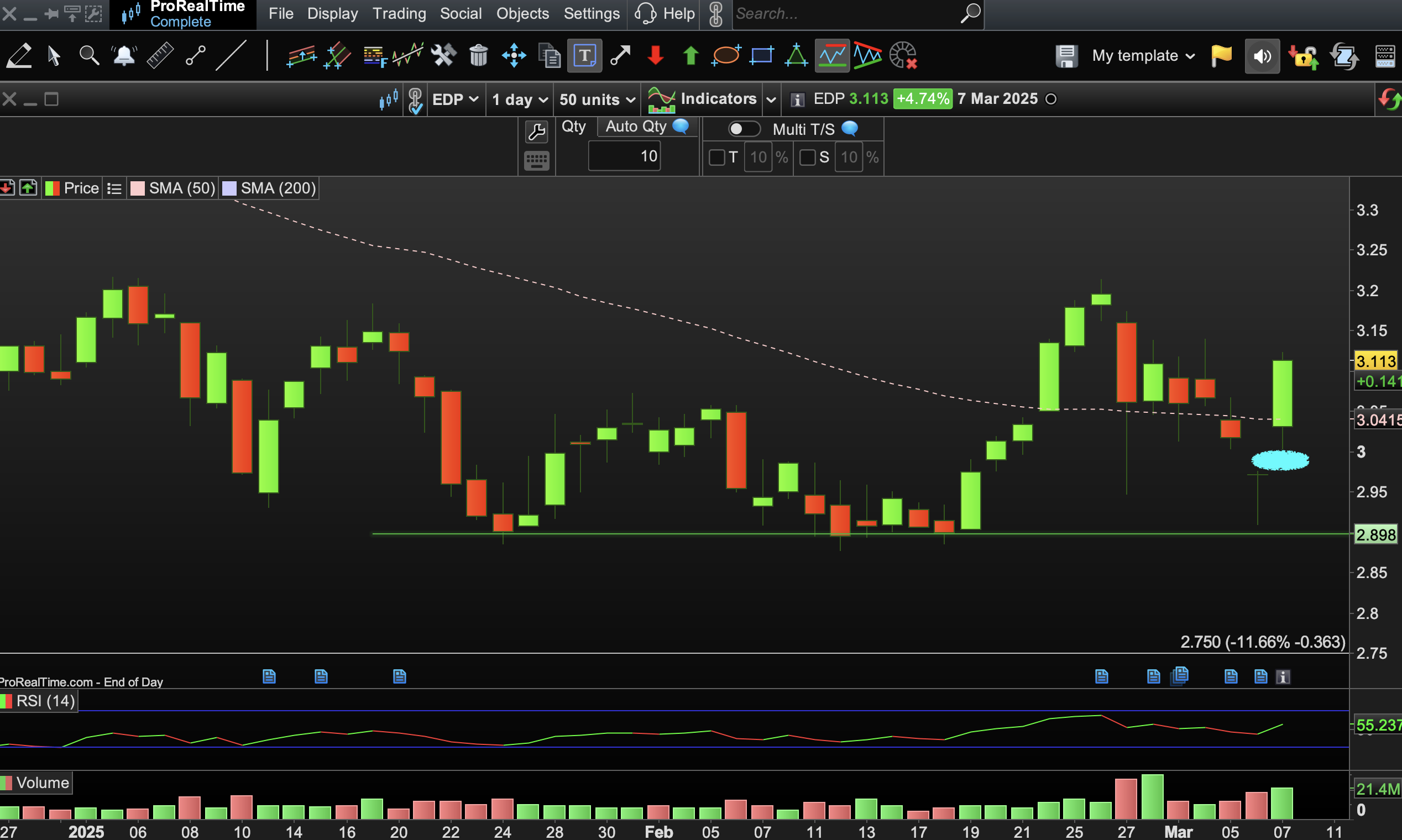 Também me parece. Fica ali uma ilha fabulosa seguida de vela verde fortíssima. Também conto com ela nos 3,50 daqui a um mês e tal, para destacar o dividendo e ficar pelos 3,30.