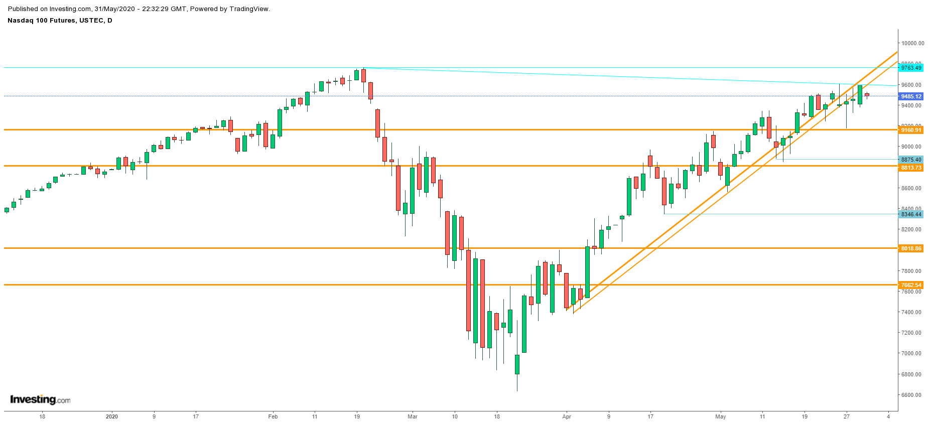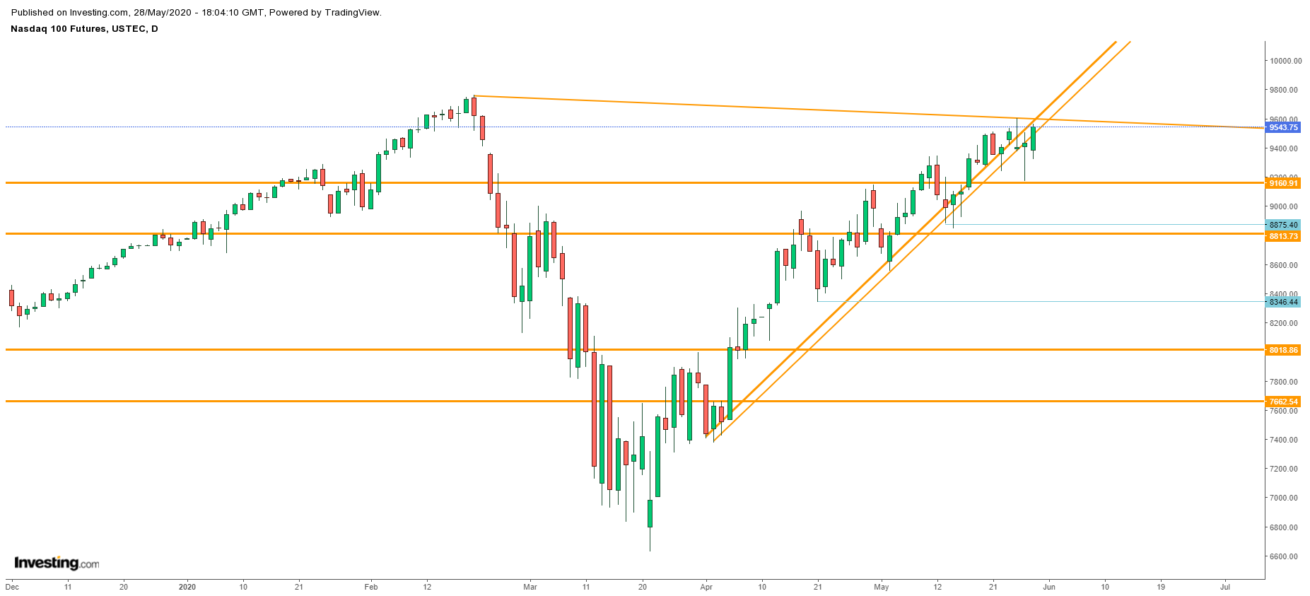 Eu diria que qualquer fecho acima do gap vai atirar o NASDAQ100 para novos máximos.