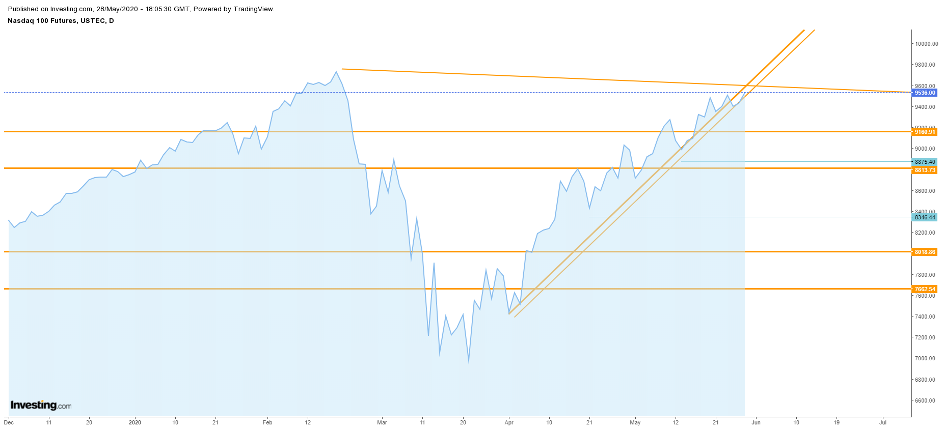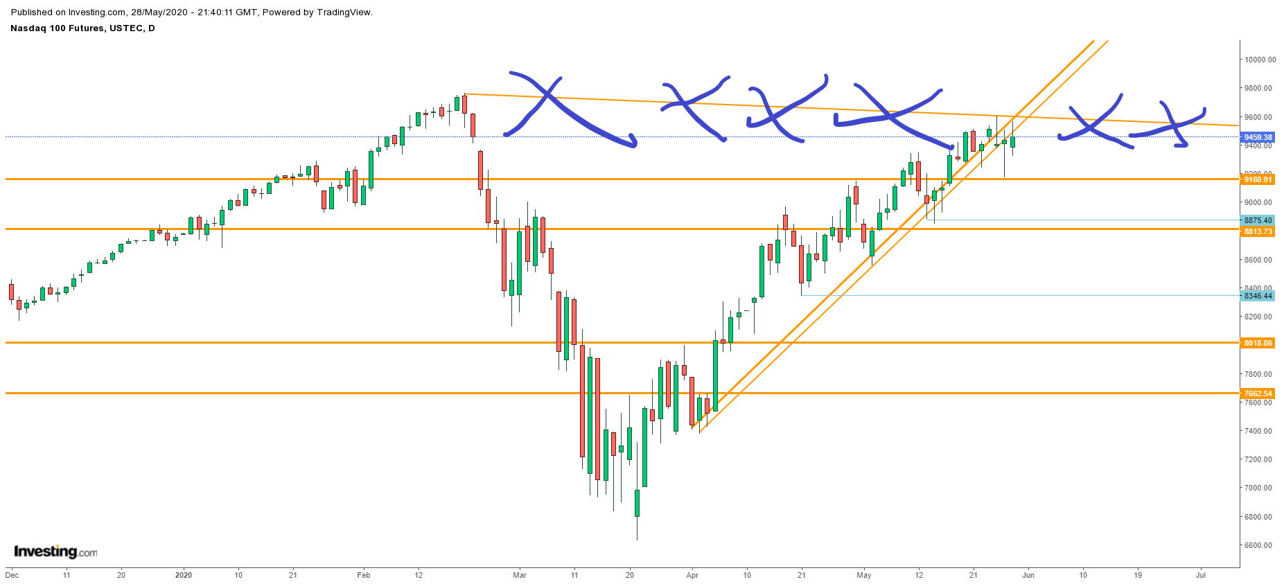 Fiz uns riscos no Nasdaq, parece que pode estar a ficar a jeito para a chegada dos ursos...