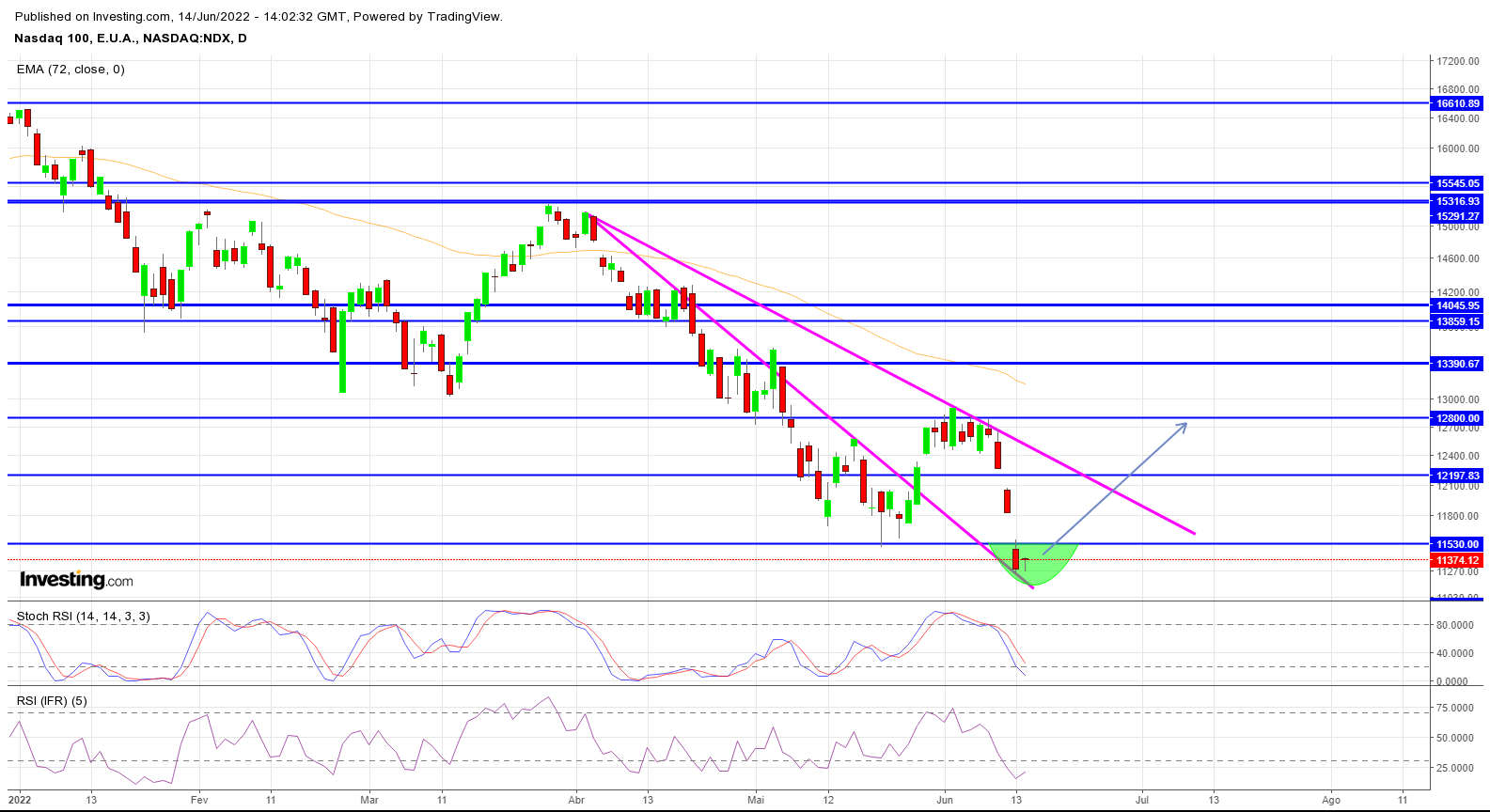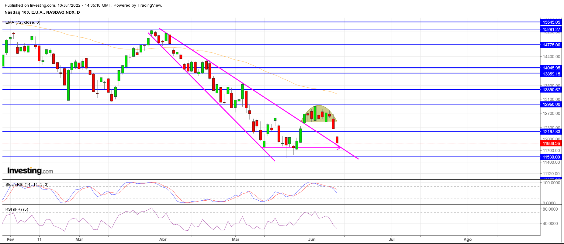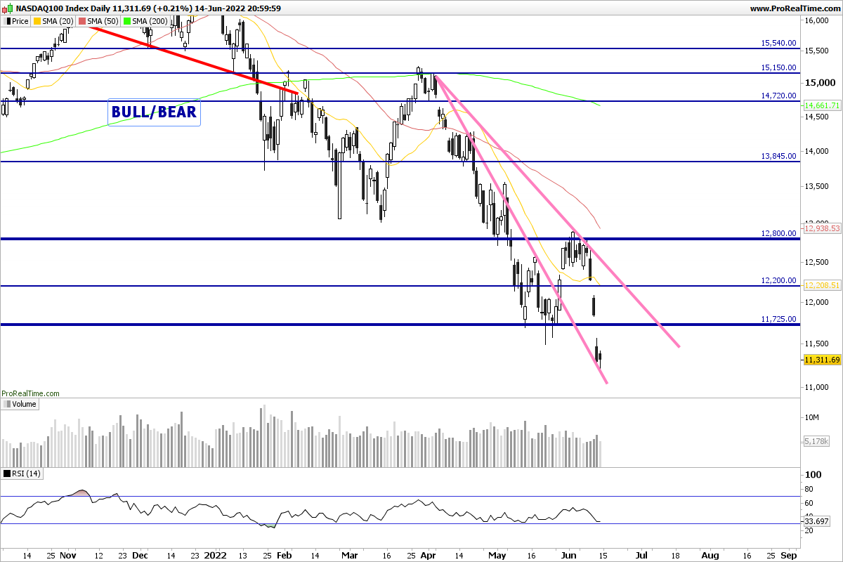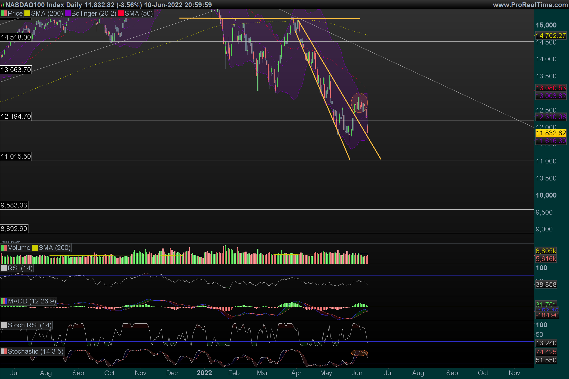 Estamos a chegar a 7 meses de bear market no N100 e pouco ou nada temos de ressaltos, vai em queda a pique. Desde meio de Maio parecia estar a forma uma base temporária, mas nada parece que está a tudo fora e ninguém quer ainda entrar.