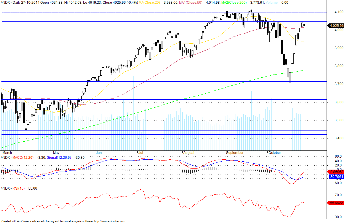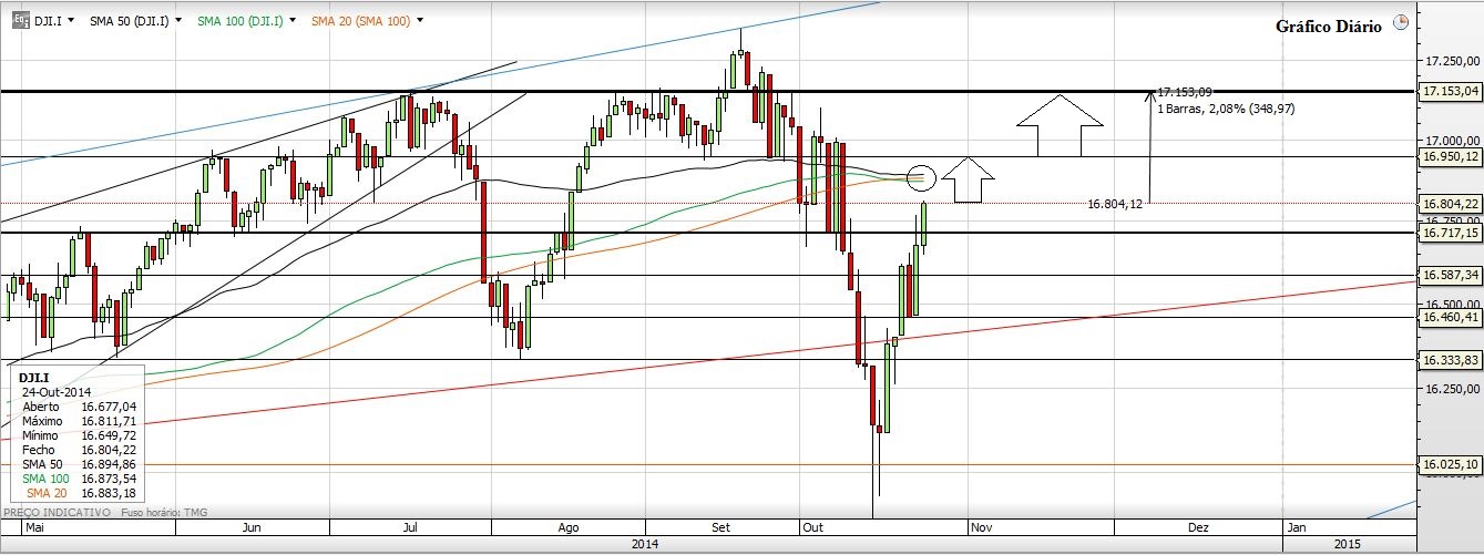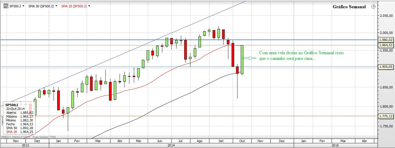 Deixo aqui o meu prognóstico para a próxima semana: A Subida. E Porquê? Em primeiro lugar por causa da vela que o S&P500 fez no semanal, depois porque no diário o Preço fechou em máximos do dia, superou os 1950, a M100 e também fechou por cima dos 1964 (um valor importante na minha óptica). Por tudo isto tem sentido o Preço ir aos 1980, esse valor de extrema importancia para o curto prazo e que se quebrado (e acho que vai ser quebrado) pode levar o Índice novamente aos 2000. Depois o NASDAQ mas também o Russell fecharam colados a fortes resistências, e pela maneira como fecharam no diário e no semanal não encontro nenhuma falta de força no Preço para que não quebre as tais resistências...