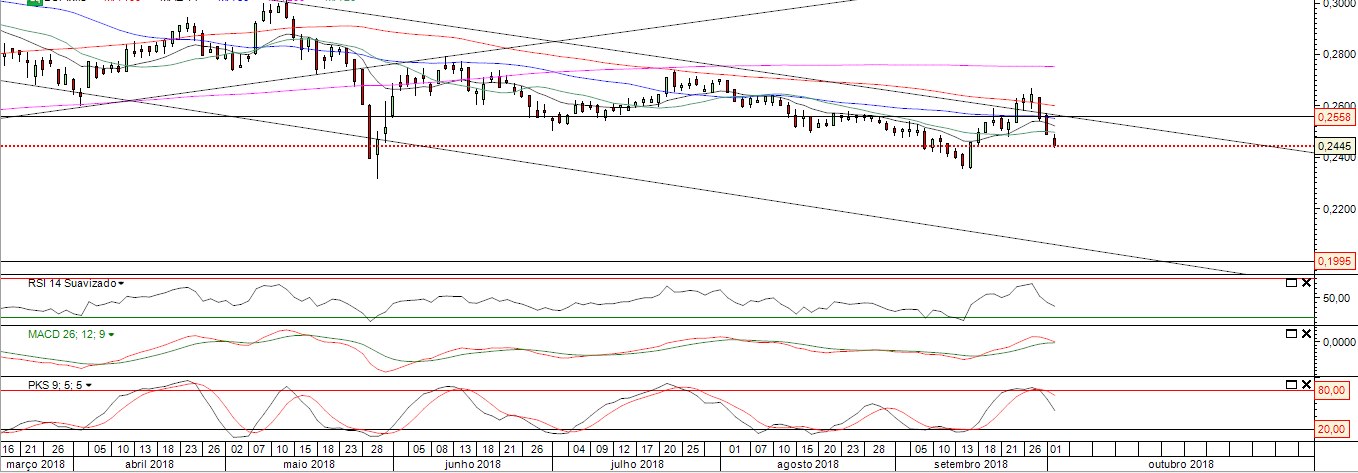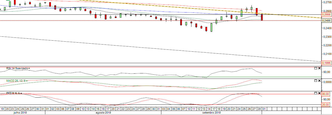 BCP fechou em mínimos do dia , com uma vela muito feia e com segundo dia de queda e dentro do canal descendente que vem desde Janeiro de 2018.