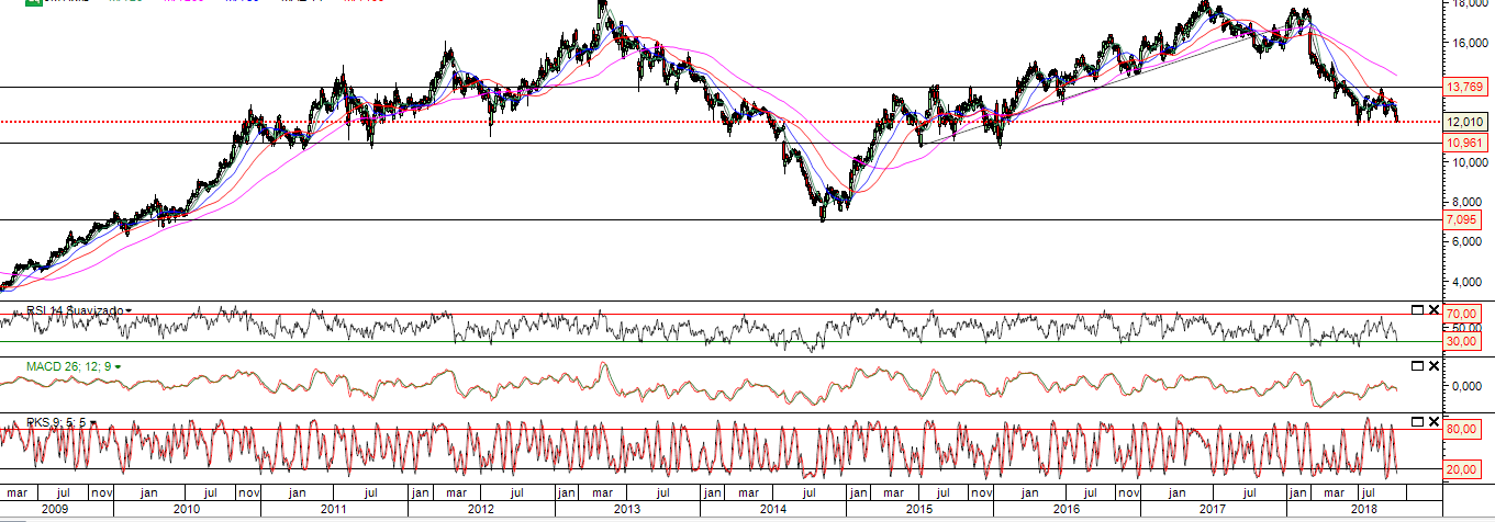 -a cotada está num canal descendente já a algum tempo, se descontarmos os dois primeiros meses do ano, que foram de maior euforia e não prevaleceram. Está neste momento próxima do seu topo;