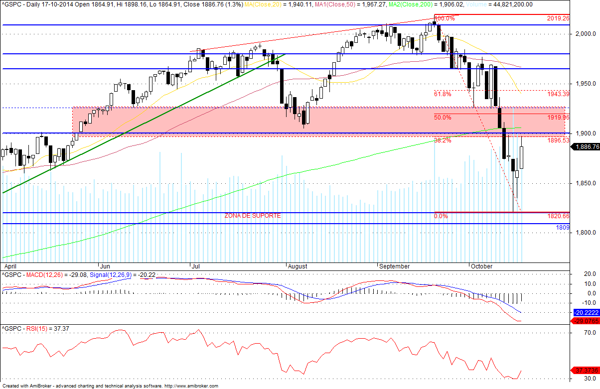 Houve ali uma zona de rejeição do preço com um higher low e o preço subiu mas a zona assinalada a amarelo entre os 1885 e os 1905( Media Movel) é que vai ser uma zona de esclarecimento importante para os proximos dias...pessoalmente...depende dos earnings e estou relativamente optimista face aos earnings...mas podem correr mal...perfeitamente natural o preço ter parado na 6feira na zona inferior desta zona... Mas nao tenho ilusoes...as mm estao descendentes...a tendencia para ja é descedente!