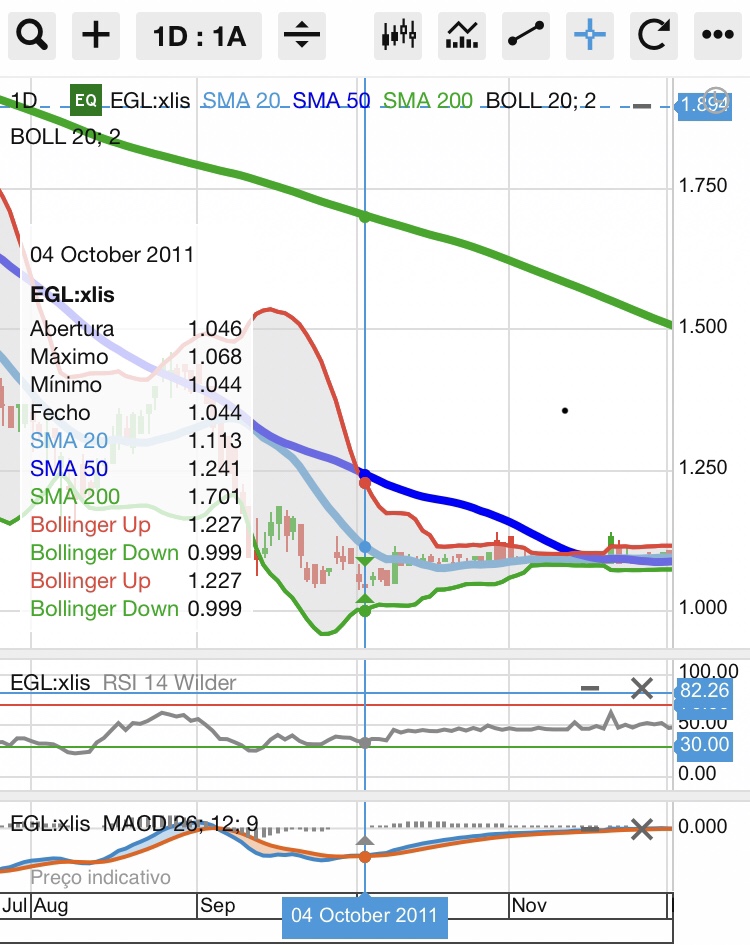Basta olhar para o gráfico e ver a tendencia de queda consecutiva dos 4 euros até 1.79 euros ( Para já ).