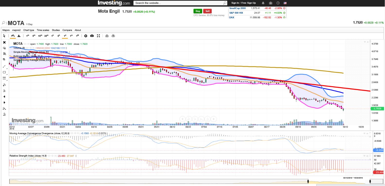 Quando abri a geringonça (felizmente está funciona bem e não faz mal ao País) e vi aqui a águia pensei: já leu a notícia que dá conta da actividade da Renamo para desestabilizar ainda mais Moçambique. Essa é de facto uma notícia bear para a Mota, mas o que conta para mim é a elevada probabilidade de já ter feito um fundo e ter agora espaço livre até 2 euros.