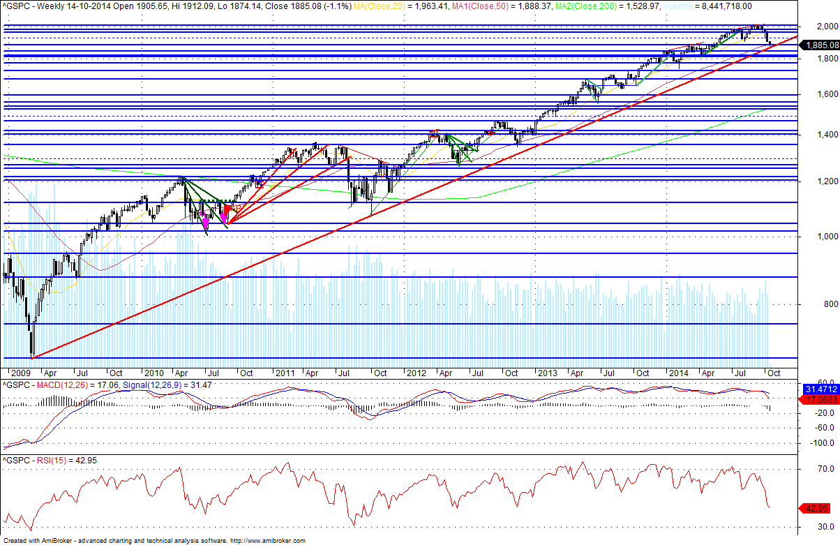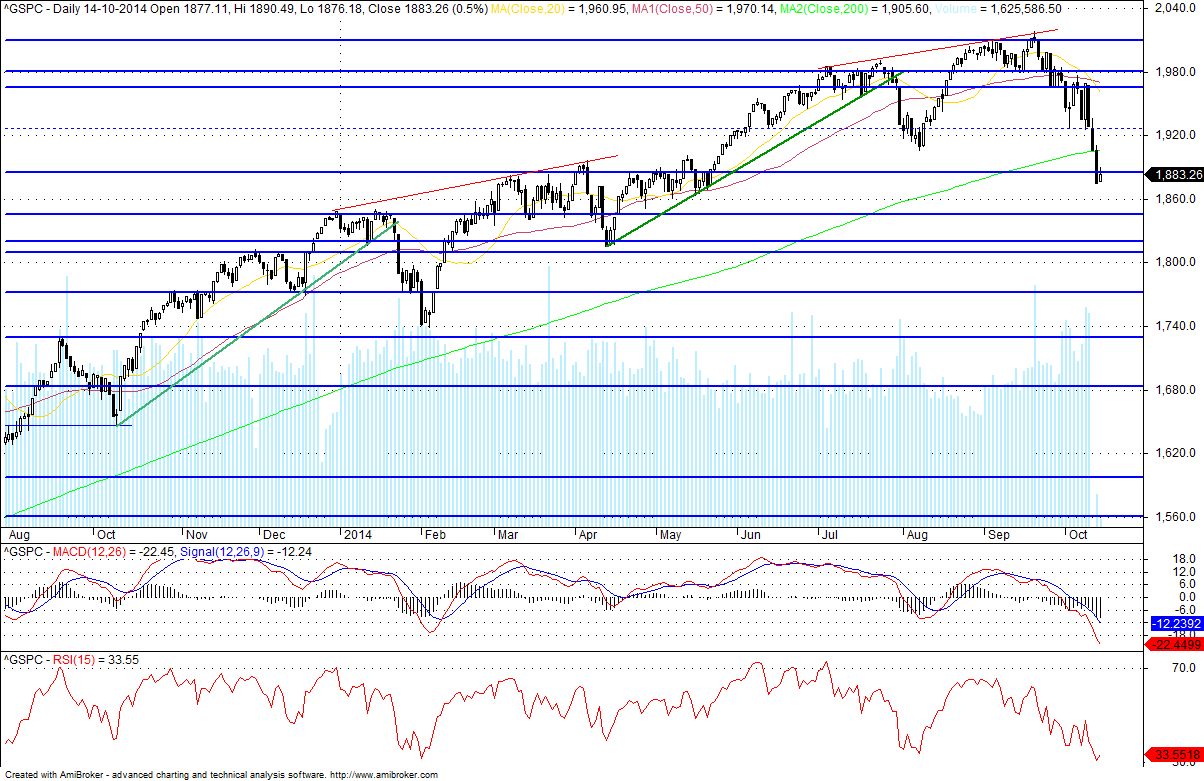 Aqui vai o meu modesto contributo. Acho que nos próximos dias o SPX tanto pode subir como descerCertezas, não existem. Unicamente observo que na última sessão, o preço fechou praticamente em cima da M200. Tendo sido estoirado o Pivot S2, e não se vislumbrando nenhum outro que possa suster a queda do índice, será que a M200 irá impor algum respeito ? A ver vamos