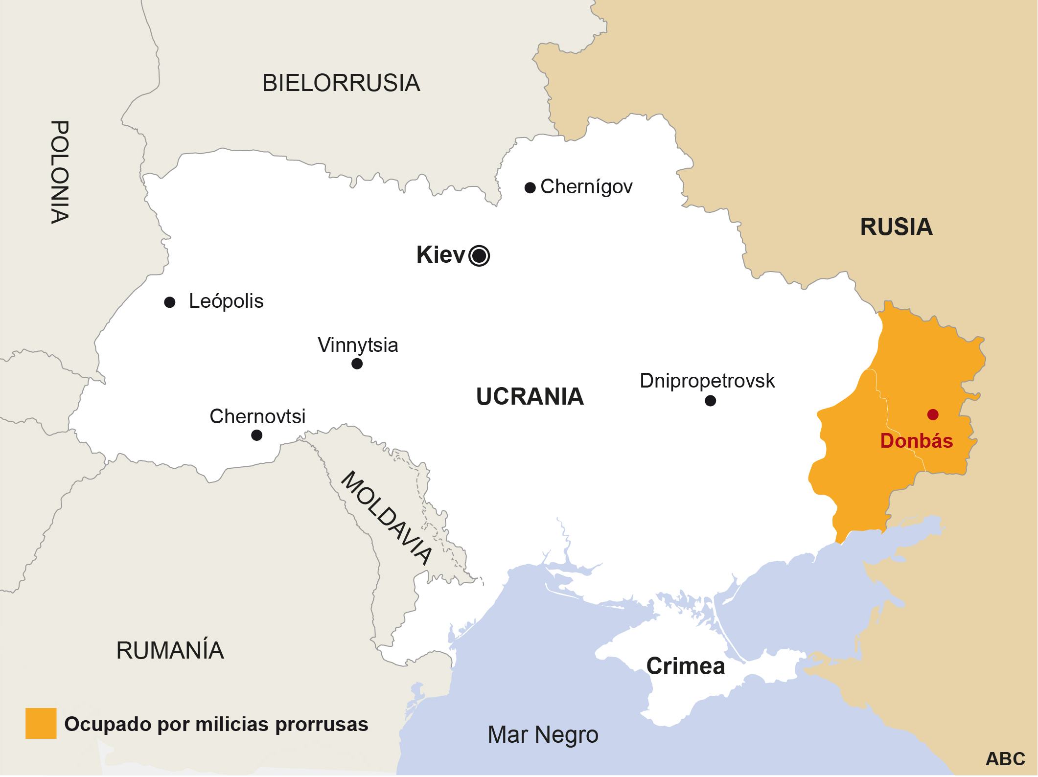 Rusia acumula su Ejército al otro lado de la extensa frontera con Ucrania, en particular junto a la región del Donbass, donde se concentra la población ucraniana prorrusa. No hay en estos momentos soldados rusos ni ucranianos en ese territorio, donde mandan las Milicias de Autodefensa de las autoproclamadas repúblicas de Donetsk y Lugansk, sus dos principales ciudades. Pero el primer escenario bélico con el que cuenta Occidente es una ocupación del Donbass por parte de las fuerzas rusas, sin necesidad de pegar un tiro.