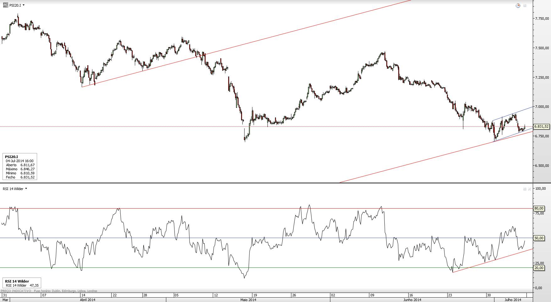 Aos valores atuais, o Psi20 está a subir uns miseros 4% em 2014, ano em que tudo ou quase tudo parece estar a melhorar nas finanças do país e das empresas... mais uma prova de que os mercados antecipam tudo! 8-)