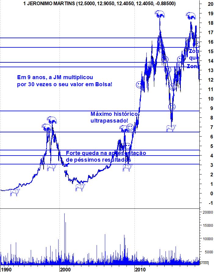 Ao longo de toda a minha vida dedicada aos mercados sempre achei muito curioso que a JM fosse a única acção portuguesa que, frequentemente, reagia com violência à apresentação de resultados. É um fenómeno habitual nos mercados internacionais mas em Portugal é raro, uma vez que a maior parte das acções raramente se move depois da apresentação de resultados. Porque é que a JM tem movimentos explosivos depois da apresentação de resultados? Confesso desconhecer a resposta mas a única explicação que encontro é o facto da sua elevada exposição aos mercados internacionais, tornando-a mais uma "acção do mundo" do que nacional.