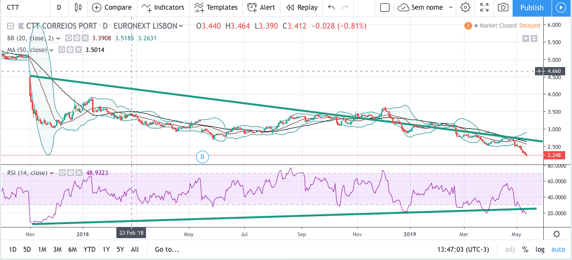 Ctt lateralizando, falta-lhe quebrar os 2,32 para sonhar com voos mais altos mas começa a ganhar forma.