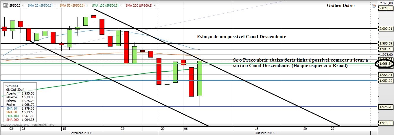 em primeiro lugar quero felicitar-te pela tua partilha. pois é partilhando ideias que todos vamos aprendendo. Eu tb aproveitei em parte essa broad, mas depois de ver melhor a figura tal como te disse fiquei com reservas. Na minha opinião acho que é dificil falar em alguma possível figura no momento actual do sp. Talvez tenhamos um canal de baixa de curto prazo?, mas parece-me um pouco forçado. Acho que neste momento é preciso esperar para que haja alguma clarificação. No curto prazo mantenho a minha opinião só com o rompimento em alta da zona dos 1980/85 é que fico convencido de novos máximos anuais até lá vamos observando... o mercado não acabou ontem