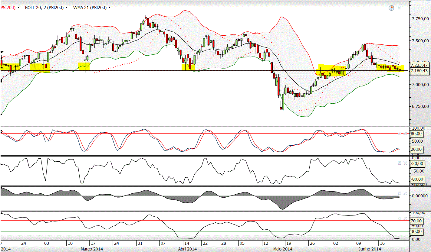 Com o BES fora de combate, o índice ameaça quebrar em baixa a MM 20.... restará a zona dos ~7150 como último bastião.