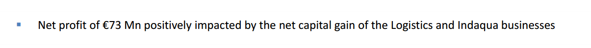 Foram sendo vendidos os negócios das , Autoestradas , Portos , logísticos, TERTIR e da Indaqua .