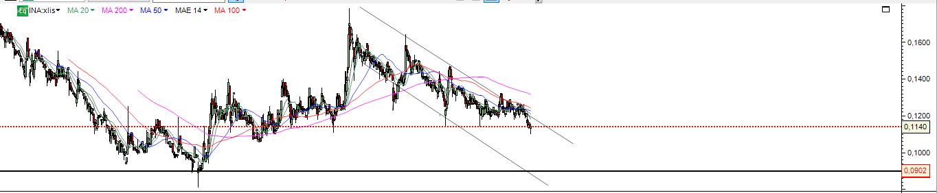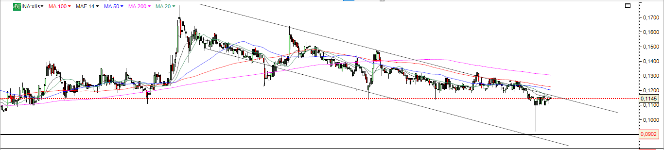 Hoje foi aos 0.09 e conseguiu uma recuperação Intraday , mas a probabilidade maior será voltar ao suporte e negociar nesse patamar .