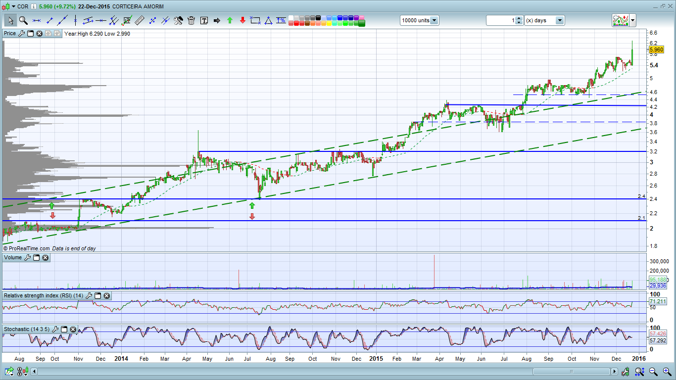 A minha menina tem sido a Corticeira desde o inicio de 2015, tem se aguentado fortemente este inicio de ano, esta semana penso que será decisiva, estou indeciso se venda já tudo... qual é a previsão (se há) se sempre entra no PSI? Poderá subir mais e ultrapassar o seu máximo historico ?