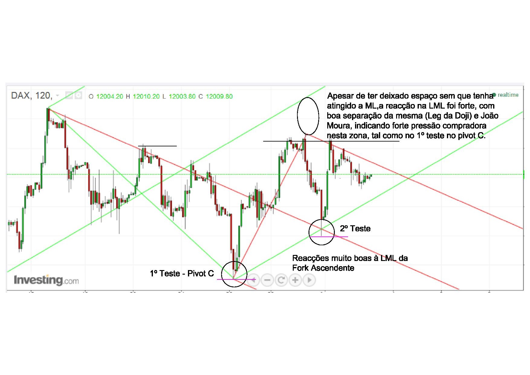 A ideia é a de que a fork descendente (que me parece ter bastante coerência com o preço) revelou sinais de força do preço no teste à ML, inclusive com um João Moura, facto que parece sugerir que a ML é um suporte fortíssimo - o preço parece recusar-se a obedecer à fork.
