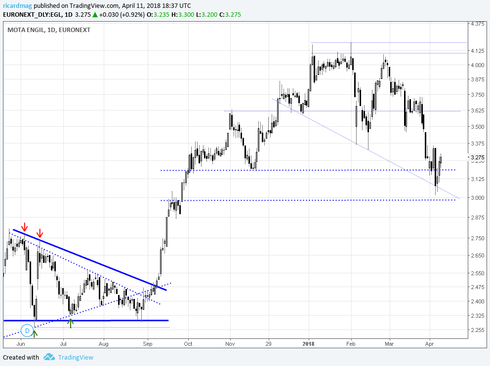 A MOTA após apresentar os PESSIMOS resultados com uma queda de 97% no resultado liquido de 2017, teve uma forte queda até á MM200, local de entrada de alguns investidores e institucionais após uma queda forte , á imagem do que também aconteceu recentemente no SP500 com suporte da MM200.