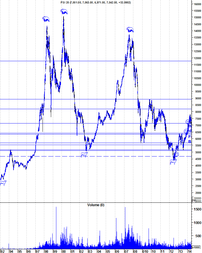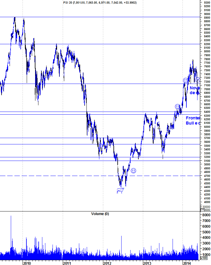 Mantenham os pés na terra.. o PSI chegou aos 7200 e a partir daí as subídas estancaram... estas últimas subidas podem ainda ser apenas um pull back de uma correção mais acentuada.