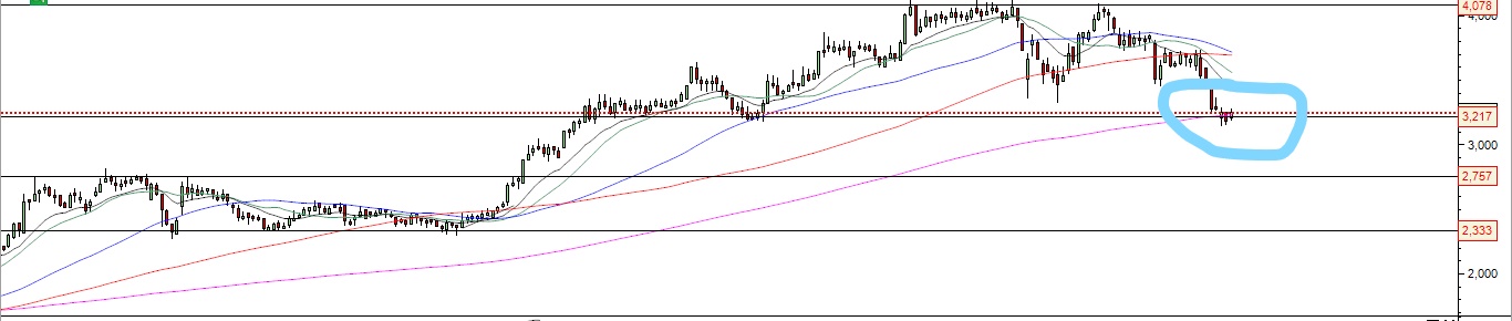 Está num suporte , sem nenhum interesse de comentários imediatos , vai depender de como evoluir o mercado geral a partir daqui.