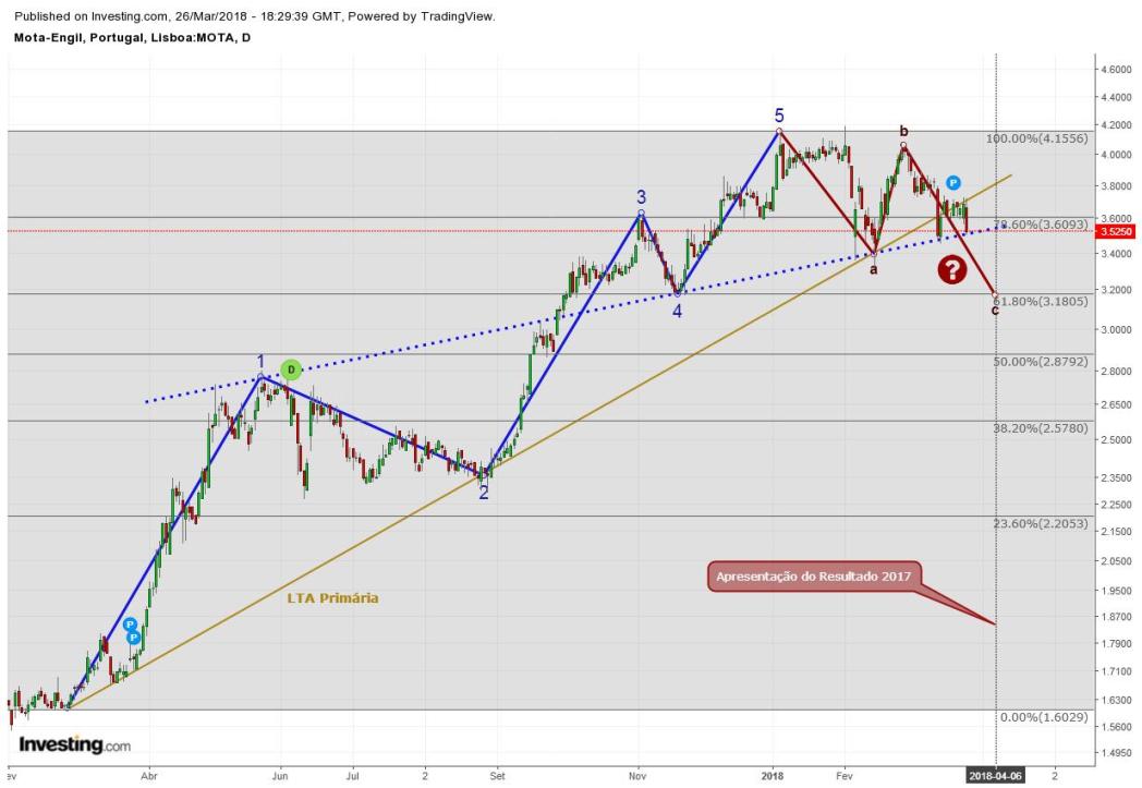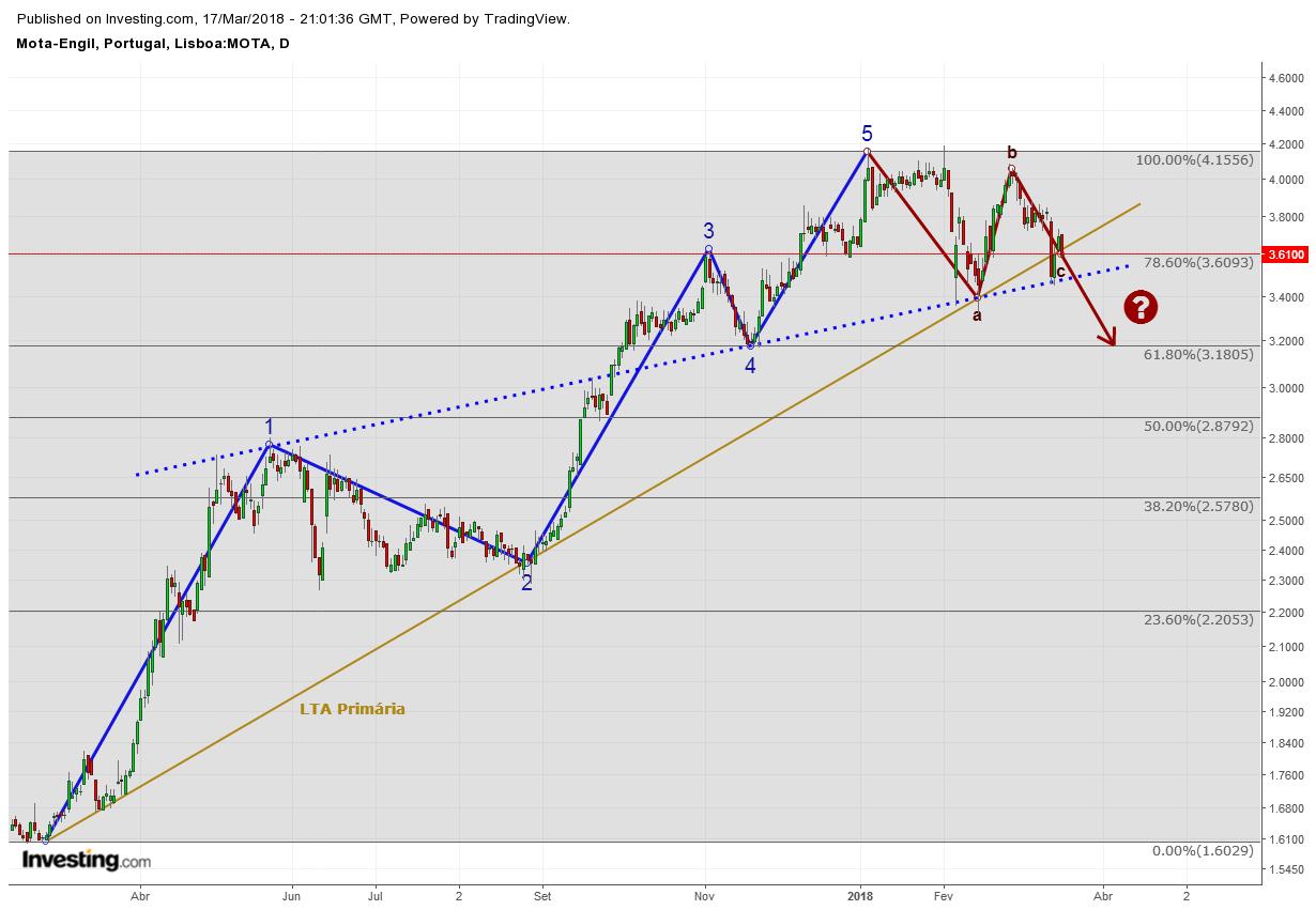 * Tudo indica que a onda de correção (Elliott) poderá ter projeção nos 61,80% Fibo na zona dos 3,20 na altura da apresentação dos resultados.
